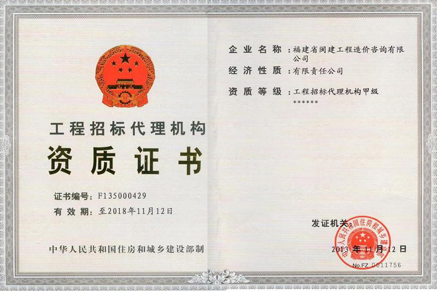 福建省閩建工程造價咨詢有限公司成立于1993年,原隸屬福建省建設委員會,2001年脫鉤改制為有限責任公司,公司注冊資本1200萬元,是一家具有甲級工程招標代理資質(證書編號:F135000429)、甲級工程造價咨詢資質(證書編號:甲150135000084)、政府采購代理資質、預備級中央投資項目招標代理機構資質(證書編號:ZYTZ-C2013239)、丙級工程資質(證書編號:工咨丙11520160008)的綜合性工程咨詢服務單位。能承擔各類建設項目的工程招標代理、工程造價咨詢...